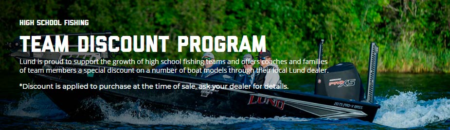 Lund is proud to support the growth of high school fishing teams and offers coaches and families of team members a special discount on a number of boat models through their local Lund dealer.